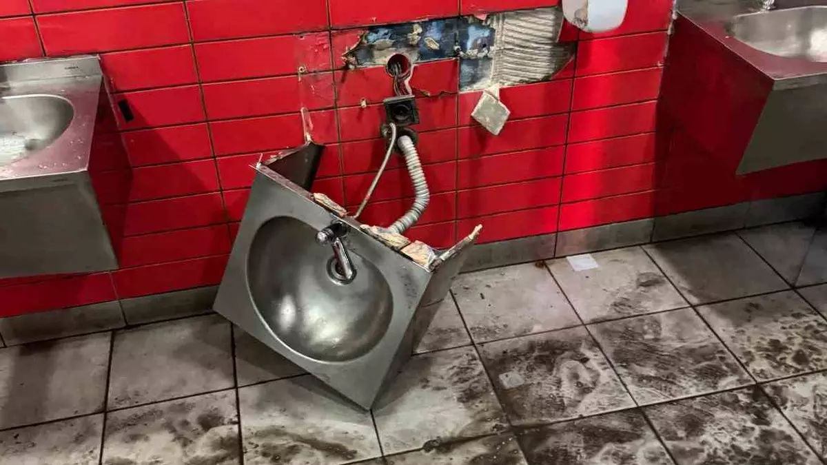 Bunun yanı sıra, tribündeki koltuklar, tuvaletlerdeki lavabo ve kabin kapılarına da kayda değer şekilde hasar verildiği belirtildi.