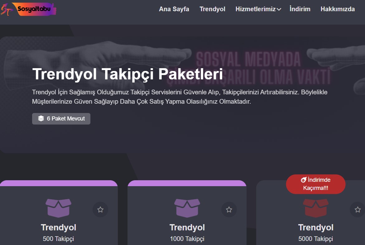 Trendyol gibi büyük e-ticaret platformlarında etkili bir şekilde yer almanın yolu, yüksek takipçi sayılarına sahip olmaktan geçiyor. Daha fazla takipçi, daha fazla müşteri anlamına gelir. Sosyal Tabu’nun sunduğu Trendyol takipçi satın al hizmeti, bu anlamda büyük bir fırsat sunuyor. Sadece takipçi sayısını artırmakla kalmaz, aynı zamanda etkileşim oranlarını da yükselterek, sosyal medya stratejinizi güçlendirebilirsiniz. Bu hizmet, sosyal medya hesaplarının organik büyümesine destek olurken, hedef kitlenize daha hızlı ulaşmanızı sağlar.