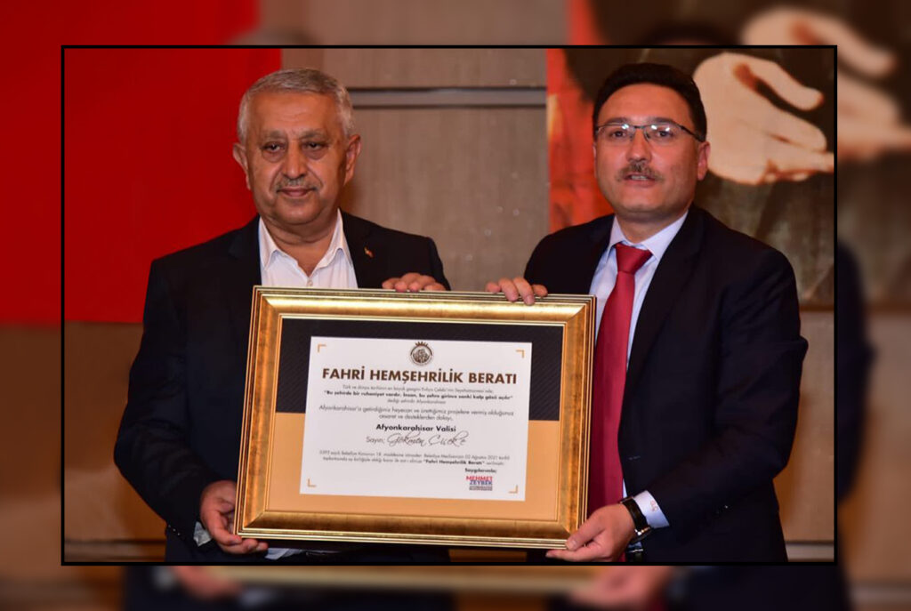 “steimiz daha uzun yllar Afyon’da kalmas, hizmetlerinin devam etmesiydi. Biz kendisini hiçbir zaman unutmayacaz. Kendimizden farkl görmeyerek Belediye Meclisimizden aldmz kararla Fahri hemehrilik berat verdik. Sayn Valimiz artk bir Afyonlu, bizim hemehrimiz. Afyonlular olarak böyle bir deerin ehrimizden ayrlmasndan dolay üzgünüz, kendisi için ise ümitliyiz. Cenab- Hak yolunu bahtn açk etsin” diye konutu.